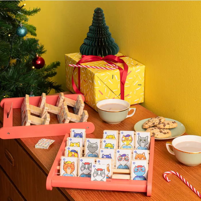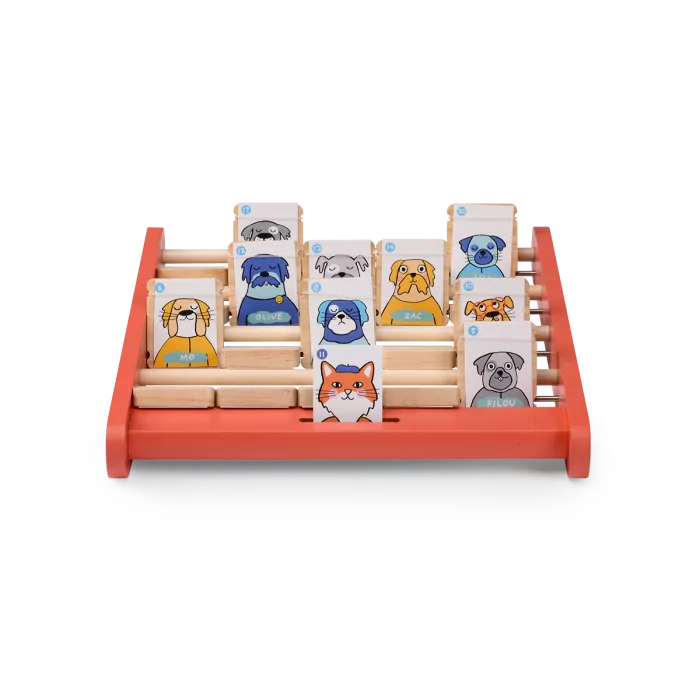 Χρησιμοποιήστε την εξυπνάδα σας για να κάνετε στον αντίπαλό σας τις σωστές ερωτήσεις και να αποκαλύψετε όσο το δυνατόν περισσότερους χαρακτήρες. Το αρθρωτό ξύλινο παιχνίδι Wacky Ones περιλαμβάνει 40 εικονογραφημένες κάρτες (οικογένεια γάτας στη μία πλευρά και οικογένεια σκύλου στην άλλη). 2 παίκτες. Ηλικίες 5 ετών και άνω.