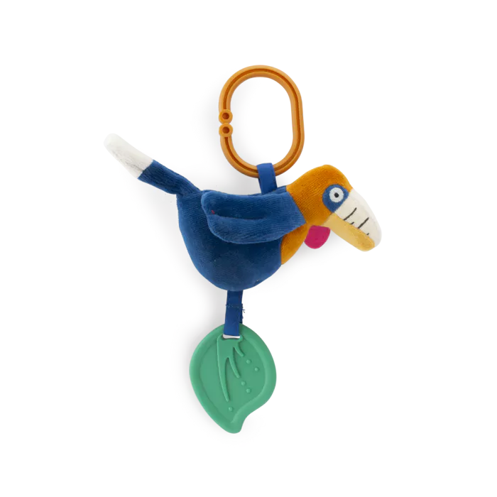 Ένα πολύχρωμο κρεμαστό βουκερώς με ένα κουδουνάκι στην κοιλιά του και φτερά που ζαρώνουν. Συνοδεύεται επίσης από ένα παιχνίδι οδοντοφυΐας σε σχήμα φύλλου.
